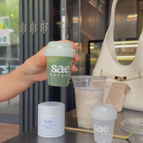 no whisk or bowl needed - just add matcha, water, shake, and pour